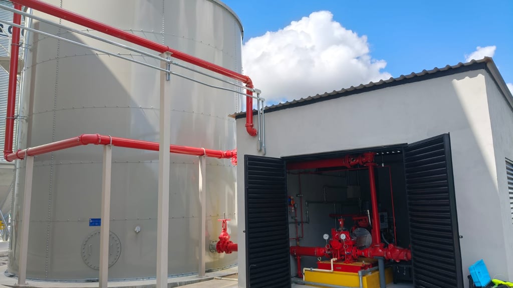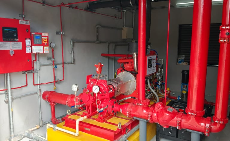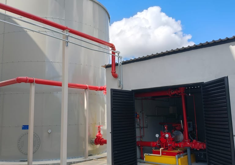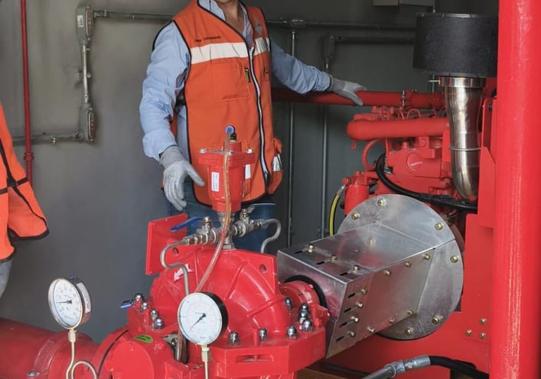 Diseño y montaje de sistemas de bombeo bajo NFPA 20, asegurando el cálculo hidráulico preciso para el suministro de agua y presión requerida en toda su red.