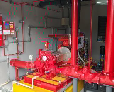 Instalación de sistema de detección, notificación y supresión contra incendios en maquinaría crítica.